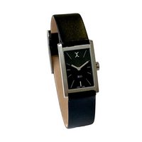 XEN Quarzuhr Damen Schwarz Edelstahl Lederband Swiss Made Eckig 5 Bar XQ0047, flach, Gehäuseboden mit 4 Schrauben verschraubt