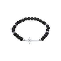 Kuzzoi Bead-Armband-Set Herren Totenkopf Lava Stein Perlen 925 Silber, Totenkopf