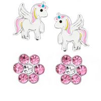 schmuck23 Серьги-гвоздики-Set Kinder Ohrringe Einhorn Blume echt 925 Silber (Set), 2 Paar Серьги-гвоздики