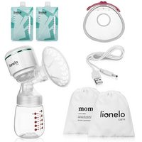 lionelo Elektrische Doppelmilchpumpe TWEE GO, 2 Stück 150ml Milchflaschen mit passendem Sauger, LED-Anzeige 9 Saugstufen Netzstrom Batterien