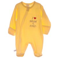 La Bortini Ползунки Schlafoverall mit Mama Papa Overall Baby Schlafanzug in Gelb aus reiner Baumwolle, mit Reißverschluss, 44 50 56 62 68 74 80