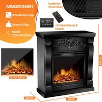 Juskys Elektrokamin, 2000 W Heizung, Flammeneffekt, Fernbedienung, LED-Licht, Timer