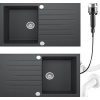 Faizee Möbel Granitspüle Granitspüle 100x50 cm mit Armatur Spülbecken 2 Becken Küche, Eckig, 100/17 cm