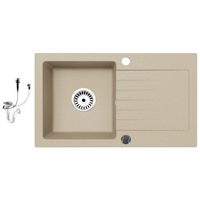 Bergstroem Granitspüle, Beige, 58 x 46 cm mit Trockenplatz, Rechteckig, 57.5/46 cm, beidseitig montierbar