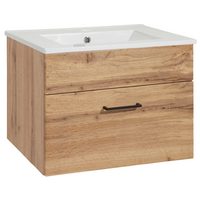 welltime Waschtisch Trento Light mit Keramik-Auflagebecken, 1 feste Blende und 1 Auszug, Breite: 61cm, Wotaneiche