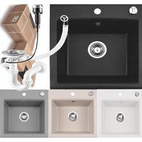 Homeline Granitspüle Granitspüle Spüle Küchenspüle mit Automatsiche Siphon Einbauspüle, Eckig, 44/44 cm, Granitspüle, (2 St., Mit Zubehör)