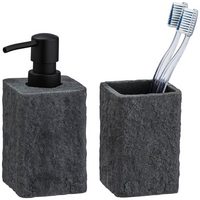 WENKO Badaccessoire-Set Modell Idro Anthrazit, 2 tlg., Дозаторы мыла und Подставки для зубных щеток aus Keramik, Linien-Struktur
