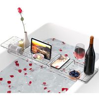 SURFOU Badewannenablage Badewannenbrett aus transparentem Kunststoff Badewannentablett, für Ipad und Bücher, Badewannen Ablagen Verstellbares 64-104cm