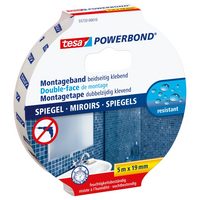tesa Doppelklebeband POWERBOND Spiegel Doppelseitiges Klebeband (Packung, 1-St) extra starkes Montageband - wasserfest / fürs Bad geeignet