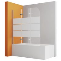Boromal Badewannenaufsatz 3 teilig Faltwand Duschwand für Badewanne faltbar Badewannenfaltwand, Schwarz Chrom Milchglas Aluprofile, (Badewannenaufsatz Schwarz Weiß Chrom Milchglas, 120x140, 130x140, 140x140, 150x140, 160x140cm), Sicherheitsglas