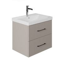 Karen Waschtisch-Set Waschtisch mit Unterschrank Venus Weiß, (2-St., Der Lieferumfang umfasst Unterschrank, eine Konsole und Waschbecken), Futuristisch, Hochglanz, Keramikwaschbecken, Softclose