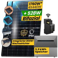 EPP.Solar Balkonkraftwerk 880Wp/800W Bifaziales Balkonkraftwerk Komplettset PV-Halterung, 880,00 W, Monokristalline, (2x 440W Bifazial Solarmodule, mit DEYE 800W WIFI Wechselrichter), Smart Mini PV-System für Ost-West- und Südausrichtung und Flachdach
