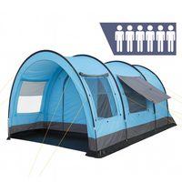 CampFeuer Tunnelzelt Zelt Relax6 für 6 Personen, 5000 mm Wassersäule, Hellblau/Grau, XXL Tu, Personen: 6