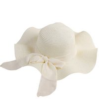 Vivi Idee Strohhut Sonnenhut Sommerhut Strandhut Straw hat, Damen faltbar, Einheitgröße wellenförmiger Rand