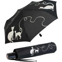 Knirps® Taschenregenschirm leichter, kompakter Schirm mit Auf-Zu-Automatik, schönes Katzen Design für Damen - Cat move