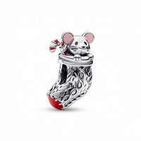 Pandora Charm-Einhänger PANDORA Charm Maus im Weihnachtsstrumpf aus 925er Silber