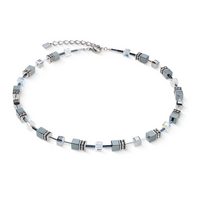 COEUR DE LION Collier Schmuck Edelstahl GeoCUBE® Halskette Würfelkette, Made in Germany - mit Hämatit, Swarovski® Kristall, Strassstein