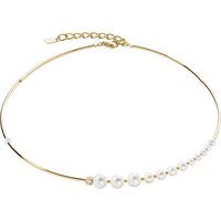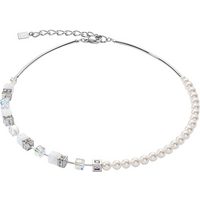 COEUR DE LION Collier Schmuck Geschenk Edelstahl Asymmetrie Würfelkette, Made in Germany - mit Kristallglas - mit Süßwasserzuchtperle