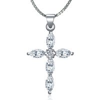 BRELLATO Kreuzkette Damen Halskette Kreuz-Anhänger, Kristall-Herzen (Set, 1-tlg., Silber-Kette mit Kreuz-Anhänger, Geschenk Kommunion Firmung), Kreuz-Kette, Sterling Silber 925 18K Rhodiniert, 5-A Zirconia Herz
