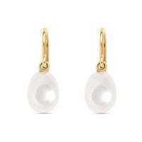 Mugello Perlenohrringe Goccia weiß gold-platt. Muschelkern klassisch stilvoll Geschenk, Perlenschmuck für Frauen, Bügel Sterlingsilber mit 585er Vergoldung
