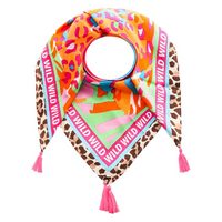 Zwillingsherz Dreieckstuch "Leo Wild", auffälliges Tuch, Leo-Muster, WILD Schriftzug, Feinstrick
