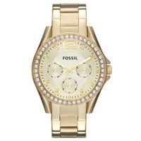 Fossil Multifunktionsuhr RILEY ES3203, Quarzuhr, Armbanduhr, Damenuhr, Datum, Edelstahlarmband, Glassteine