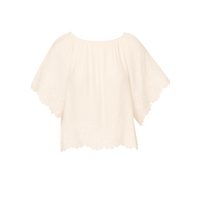Adrianna Papell Kurzarmbluse Crew Neck Pleated Airflow Woven Crochet Flutter Sleeve Top Romantisch, raffiniert, edel