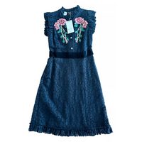 GUCCI Midikleid Ball Kleid aus hochwertiger Spitze und mit floralen Stickereien Hochwertige Spitze mit Samtband, Rüschen an Kragen