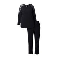 Ulla Popken Pyjama Pyjama Spitze Rundhals Langarm Modalmix