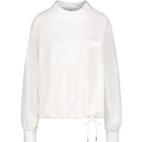Monari Sweatshirt Sweatshirt Schmuckdetail Stehkragen mit Bindeband, Logo aus Strasssteinen