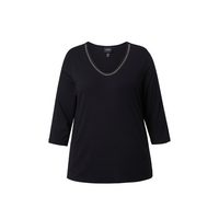 Ulla Popken T-Shirt Shirt Zierband Classic V-Ausschnitt 3/4-Arm