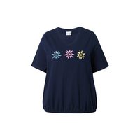 Ulla Popken T-Shirt T-Shirt Stickerei V-Ausschnitt Halbarm Gummisaum
