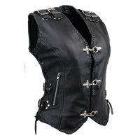 Alpha Speeds Motorradweste Damen Motorradkutte Bikerweste Lederkutte-/ Lederweste Schwarz mit Nieten und Conchos, mit Leder Schnüre genschnürt