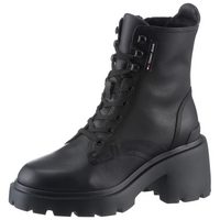 Tommy Jeans TJW LACE UP LEATHER BOOT Schnürboots, Blockabsatz, Schnürstiefelette mit Logoflag an der Seite