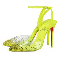 CHRISTIAN LOUBOUTIN Обувь Spikaqueen 100 PVC Туфли Высокие каблуки Sandalen High-Heel-Pumps Irisierendem Leder und Kristall-verziertem PVC