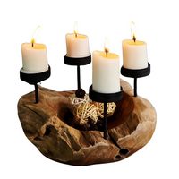 Wogeka Dekovase Doppel Glas-Vase Ø Glas 10-11 cm auf Wurzel-Holz Gamal Teakholz