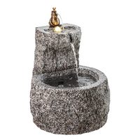 Dehner Gartenbrunnen Froschkönig mit LED, Ø 50 x 55 cm, Granit, Wassersprinkler mit Frosch aus Bronze, inkl. Pumpe / Trafo