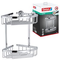 tesa Duschablage ALUXX Duscheckablagekorb ohne Bohren - 26,0 cm : 16,3 cm : 17,0 cm, Packung 1-tlg., selbstklebendes Hängeregal für die Dusche - chrom - silber glänzend