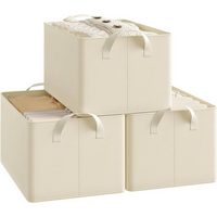 SONGMICS Wäschekorb, mit Deckel, 65 L, herausnehmbarer Wäschesack, Griffe aus Bambus