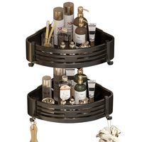 Refined Living Duschregal 2-Stück Eckregal ohne Bohren aus rostfreiem Aluminium für die Dusche, Badezimmer Duschablage Selbstklebendes Oder Bohren 2-tlg., mit 4 Klebeflächen und 4 Haken,für Bäder Küchen Duschgel(Grau&Schwarz)