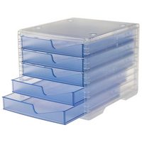 STYRO Schubladenbox 1 Schubladenbox styroswing light 5 Schubfächer transparent/blau, Stapelbar; Auszugsstopp; Geschlossene Schubladen; Geeignet für DIN C4