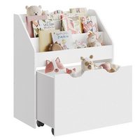 SONGMICS Spielzeugtruhe Bücherregal für Kinder, Kinderregal, Spielzeugregal, mit 3 Regalebenen, auf Rollen
