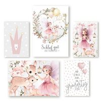 homestyle-accessoires Плакат Kinderzimmer Изображения Kinderbilder SCHLAF GUT KLEINER ENGEL FEEN BAMBI, (5 St), - Ohne Изображенияrahmen - sorgfältige & sichere Verpackung