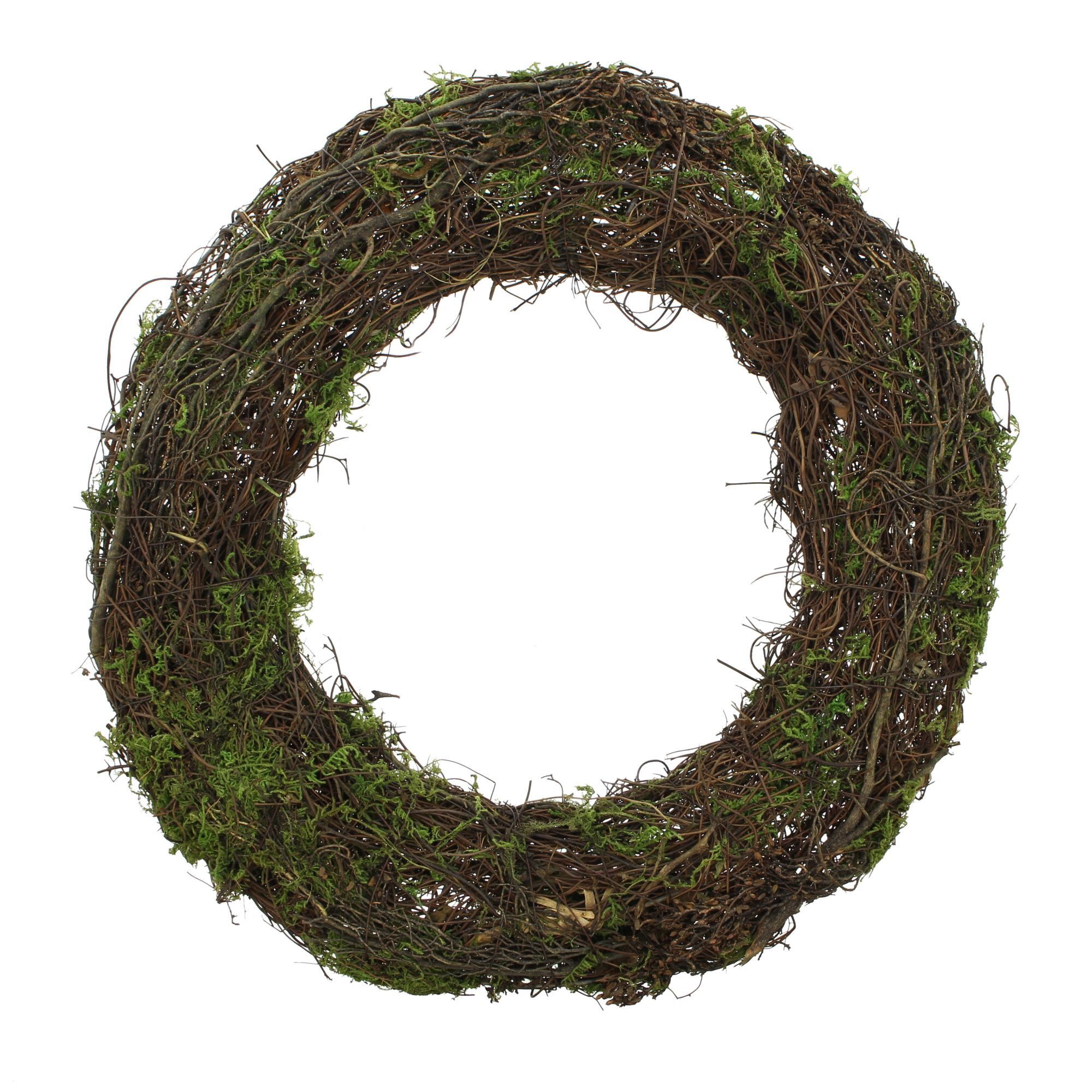 Dekoleidenschaft Dekokranz "Moos" aus Birkenreisig, Ø 40 cm, Naturkranz, Reisigkranz, Türkranz, großer Wandkranz für Drinnen & Draußen, Mooskranz, Kranz ganzjährig
