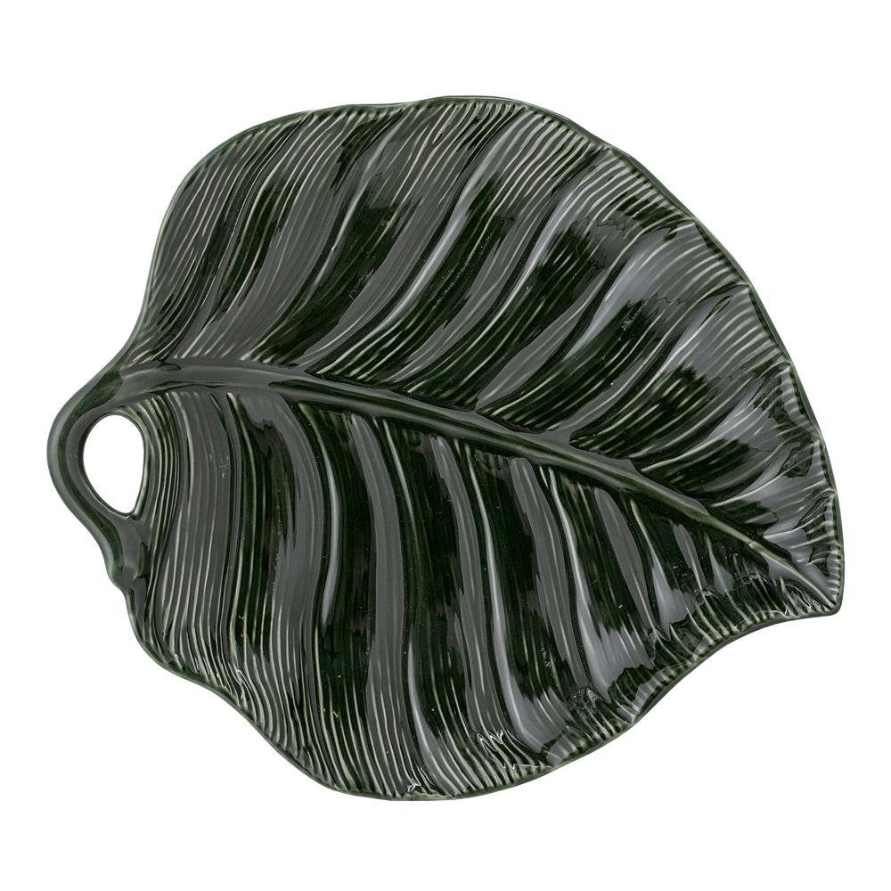 Bloomingville Декоративная тарелка Savanna Teller Grün, Blatt, 25,5x22,5 cm, Steingut, Schale, dänisches Design