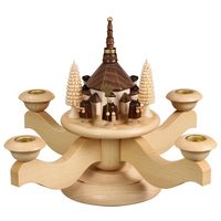 Albin Preissler Рождественский подсвечник mit Seiffener Kirche, Handwerkskunst aus dem Erzgebirge, Weihnachtsdeko aus Eschenholz