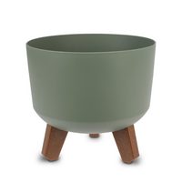Bannik Blumentopf aus Beton und Holz, Handgefertigter Pflanztopf oder Stifthalter (1 St., D6,5x6,5cm), Runde Form, glatte Haptik, ideal für kleine Pflanzen