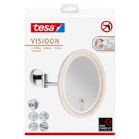 tesa Schminkspiegel schwenkbarer Косметички Visioon - selbstklebend und doppelseitig (Komplett-Set, 1-St., Inkl. Powerkit Montagezubehör - enthält Klebelösung und Adapter), 5-fache Vergrößerung - Wandmontage ohne Bohren - 30 x 48 cm - Silber