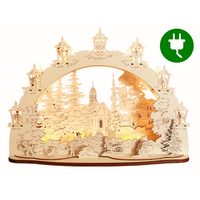 DeColibri LED Schwibbogen 3D LED Schwibbogen Winterdorf Kirche - Netzkabel, Holzkunst aus Sachsen