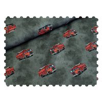 Corileo Stoff EP Baumwolljersey Panel + Kombi Feuerwehr auf Grau Stoff